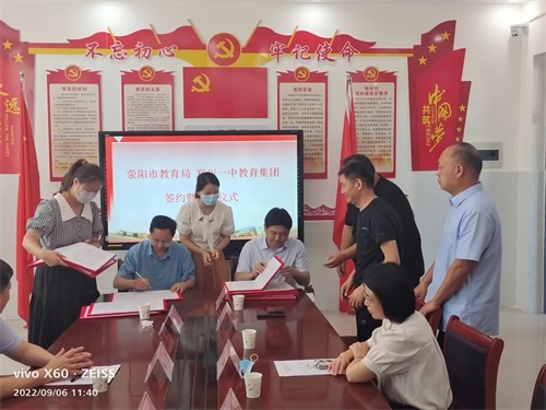 在揭牌前,郑州一中教育集团与荥阳市教育局签订签署了合作协议。