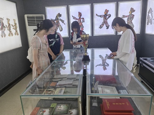 图为筑梦实践队参观沔阳皮影戏获奖证书及奖杯