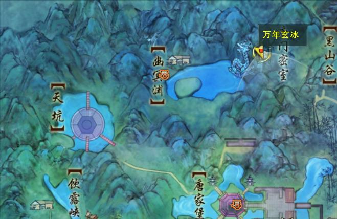 直接神行唐门密室之后飞到密室顶部的山上添加焦点:万年玄冰