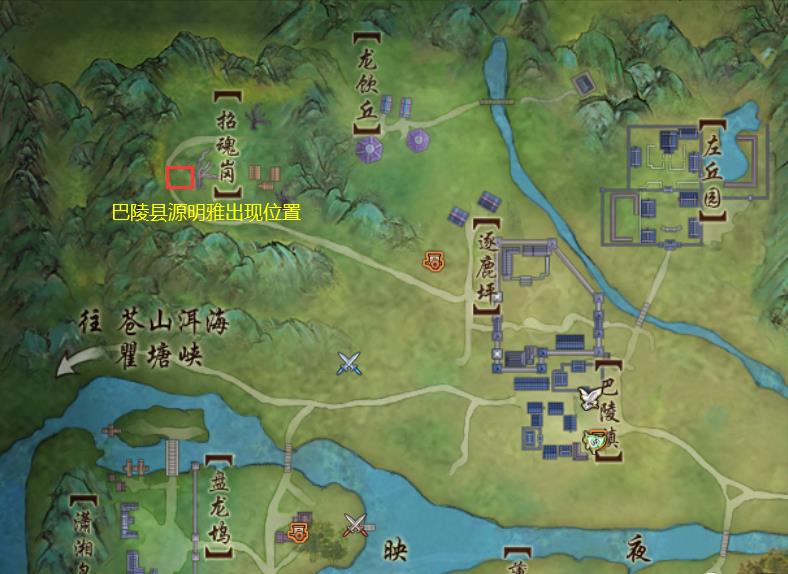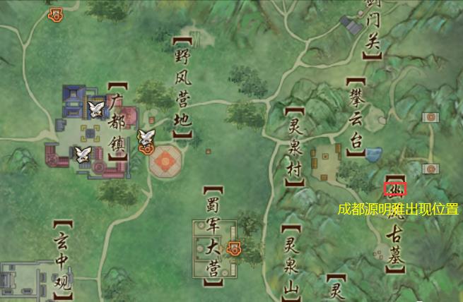 需要去找源明雅天黑以后出现(晚上8-5点)纯阳、成都、巴陵、或战乱枫华谷阴气极重之地