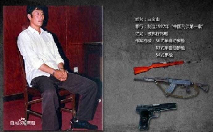 1996年3月31日,白宝山打伤警察抢走五六式半自动步枪一把,随后以此枪多次作案,杀死五名警察、打伤八名,随后从北京转到新疆继续作案,1997年9月5日被捕,1998年4月被处以枪决。