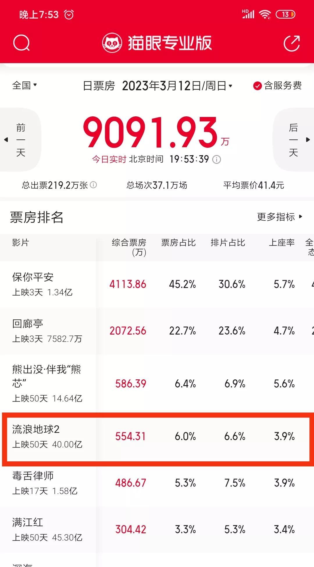《流浪地球2》破40亿!