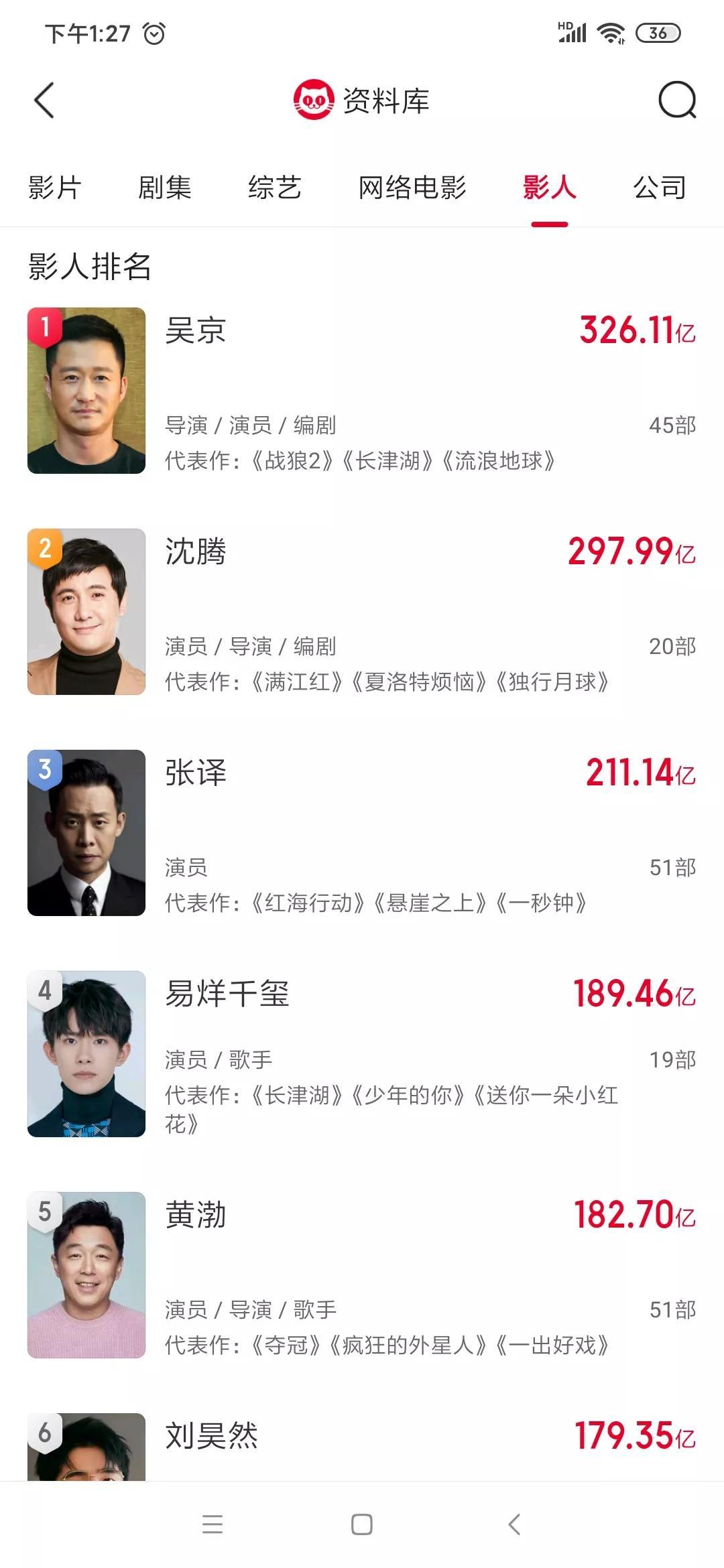 吴京个人电影总票房达326亿,高居第一!