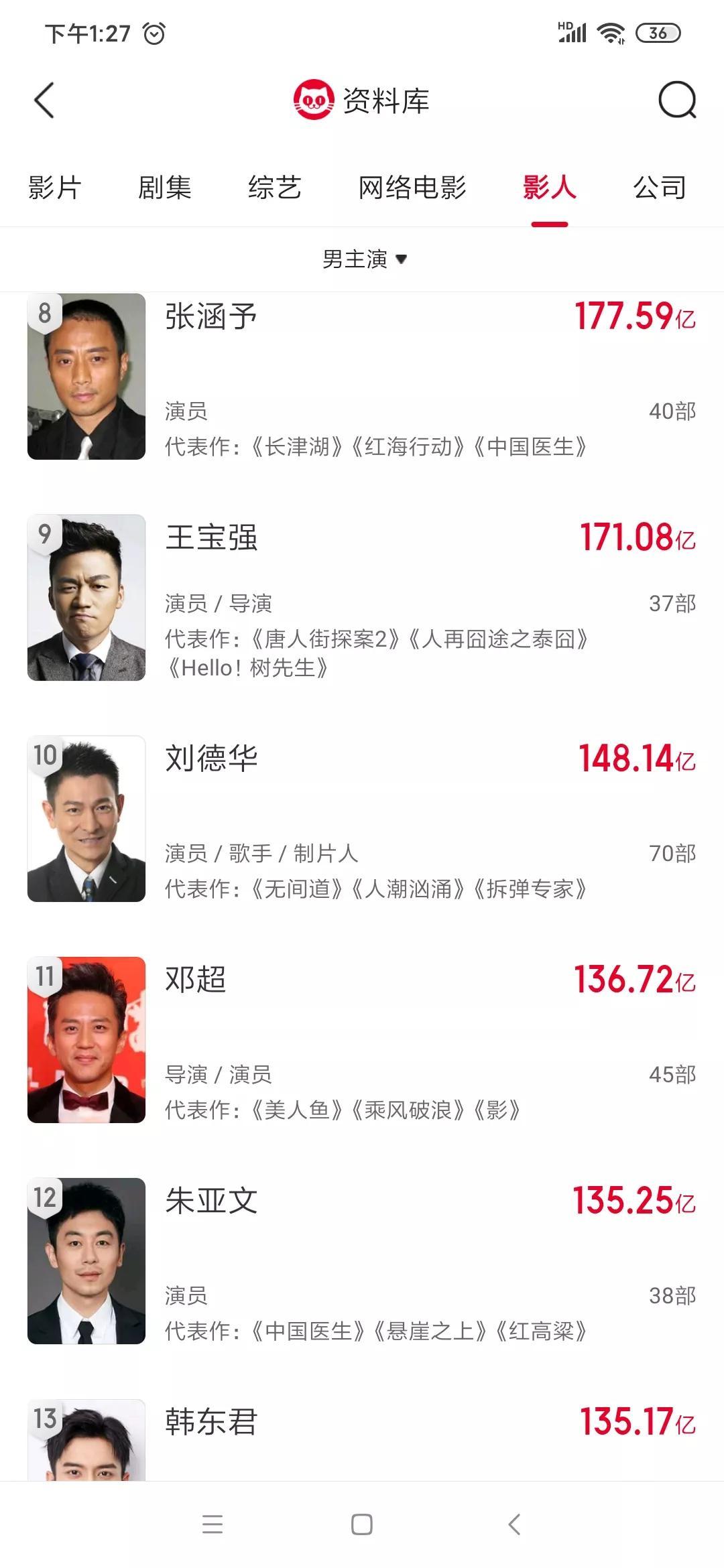 刘德华凭借40亿的票房入账,个人总票房达148亿元,超越了邓超、朱亚文等人,成为中国票房最高的男演员第十名。