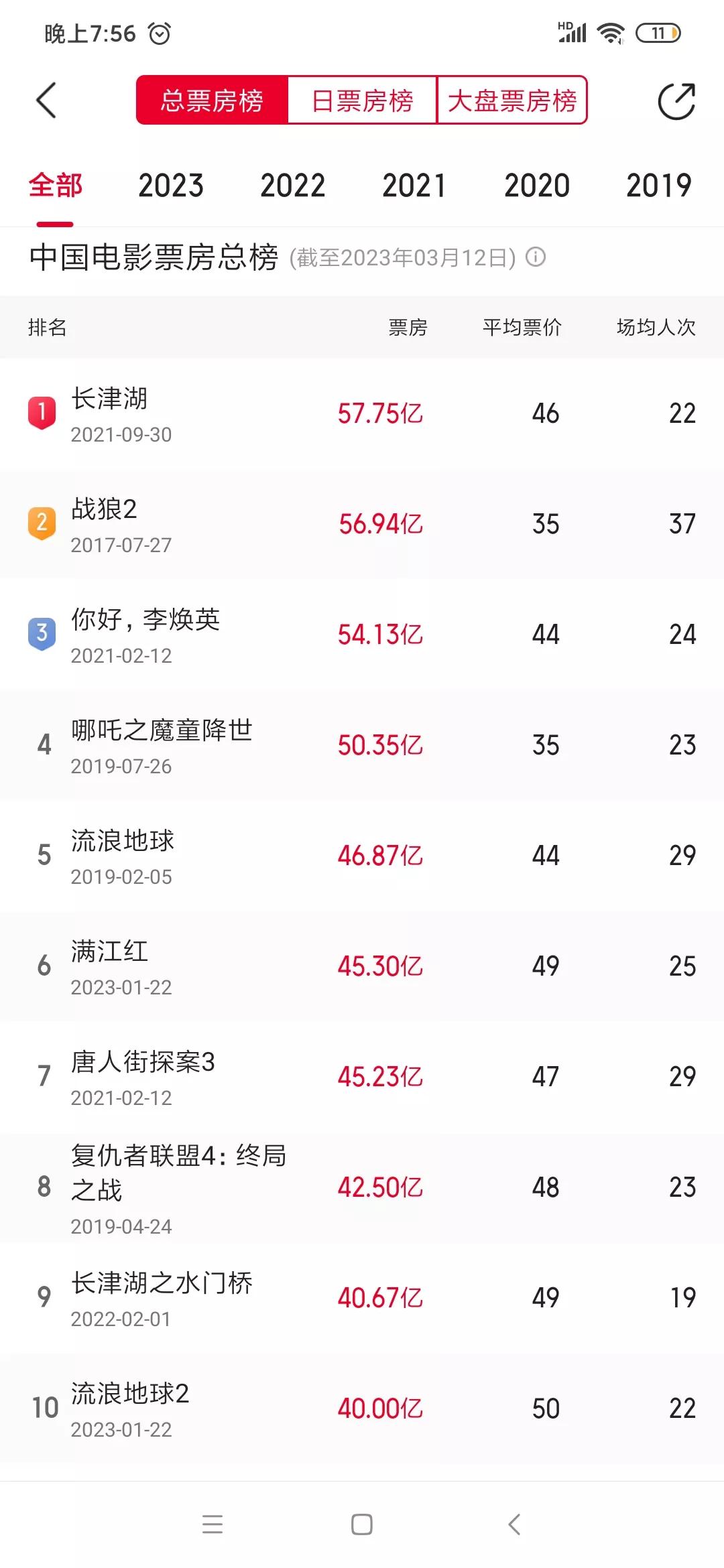 值得一提的是,张艺谋导演的《满江红》总票房已达45.3亿元,超越了《唐人街探案3》位居中国影史票房榜第六名!