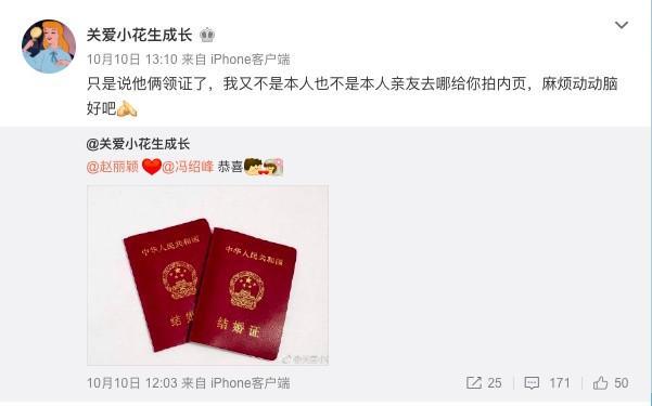 10月10日的时候,就有博主爆料称两人已经在上海领了证,当时还有很多粉丝朋友不相信,但是这下连本人都证实了。