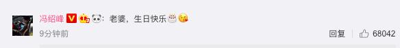 冯绍峰还在底下评论到“老婆,生日快乐”!