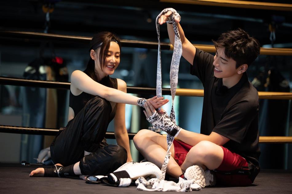 15日,某节目曝光一组剧照,王大陆惊喜现身与张天爱练拳,贴心为其缠拳击绷带、背后抱等肢体互动。张天爱更是大方素颜出镜,两人在溜冰场全程笑颜。