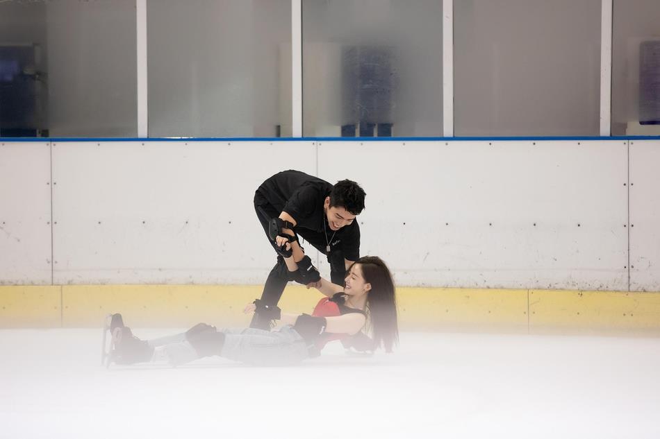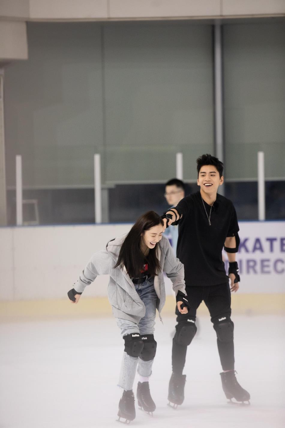 张天爱素颜出境颜值抗打 与王大陆溜冰打拳二人全程笑颜