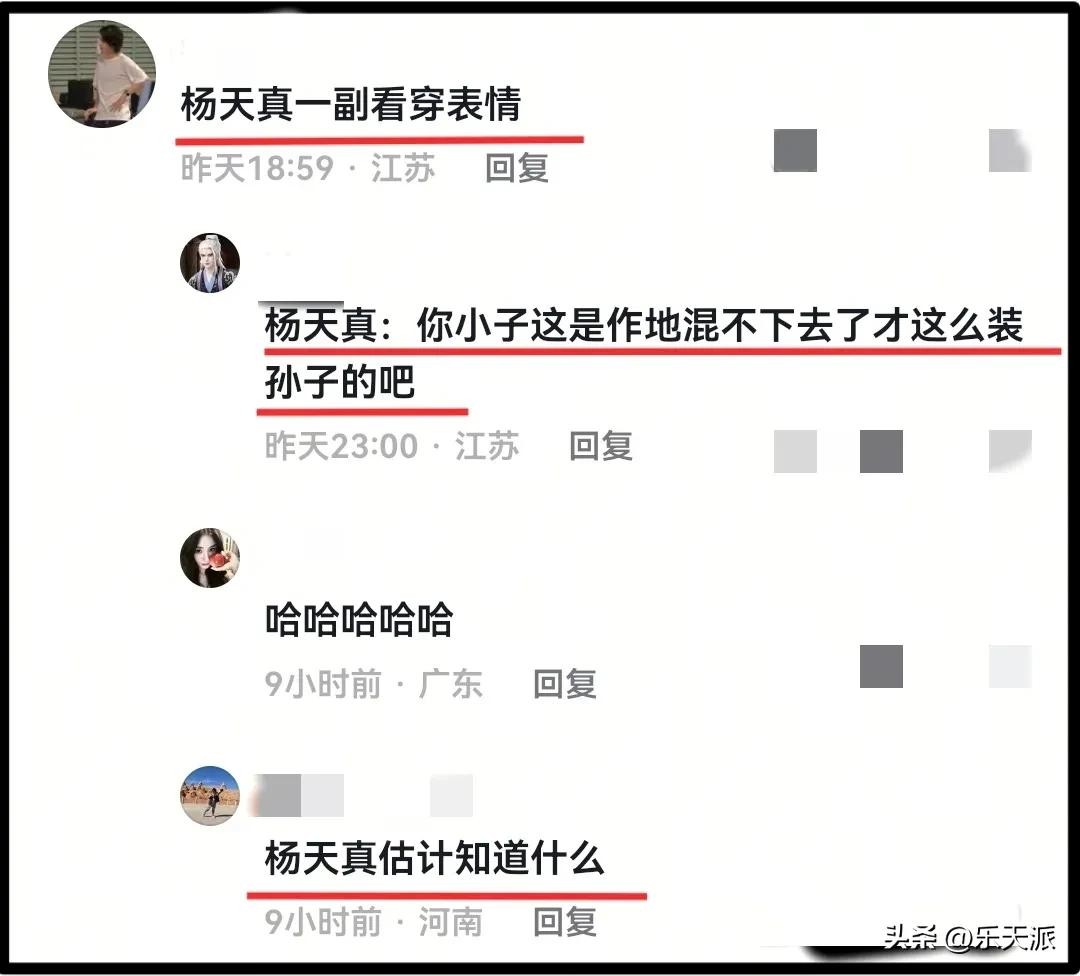 听到张丹峰将自己这些年“事业停摆”归咎于“网络造谣”,坐在下面的杨天真表情着实是耐人寻味,一脸看穿的样子。