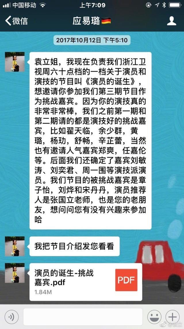 可从她分享的聊天记录上看确实是节目组主动邀请她这么一回事