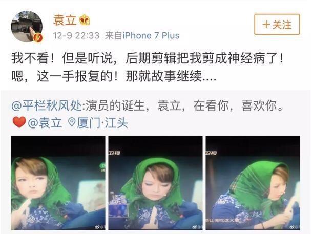 这反倒印证了之前袁立说节目剪辑把她剪的像个神经病一样的