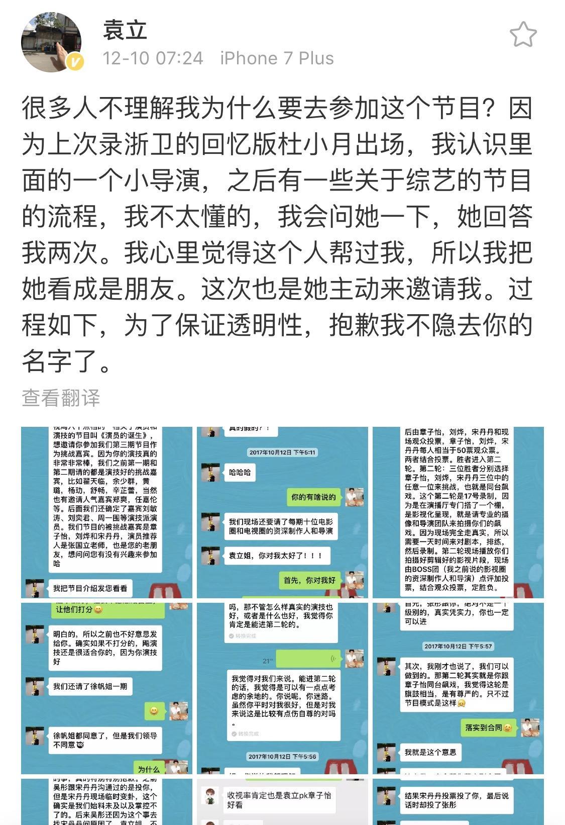 由于袁立觉得节目组就是骗人的,该工作人员拿出聊天记录澄清自己啊