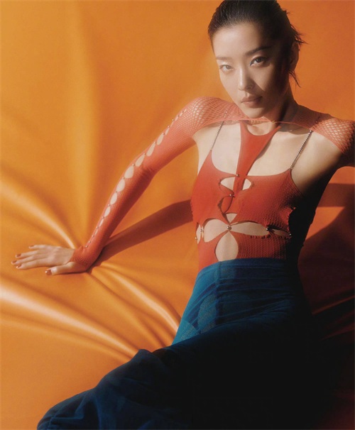 杜鹃身穿红色镂空上衣,朦胧光影下美艳满分。