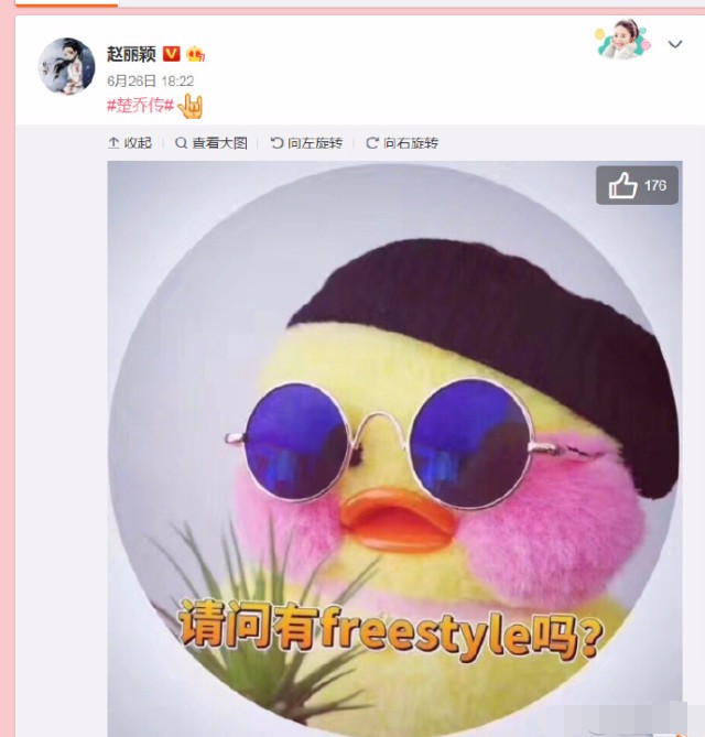 昨天赵丽颖在微博晒出两张自己的美图并配了一张freestyle的表情包,不料却引来了吴亦凡评论“请问你有freestyle吗?”,赵丽颖随即回复了一张表情包“你再敢多说一句试试?”给怼了回去