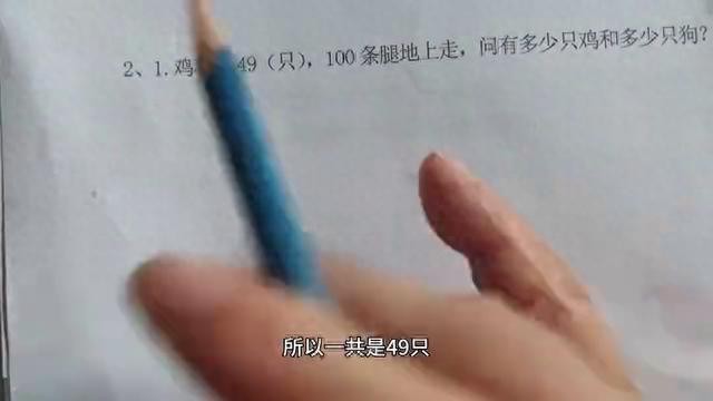 大家好,下面看这样一道题:鸡和狗49,一百条腿地上走,问有多少只鸡和多少狗?这是一道鸡兔同笼问题。