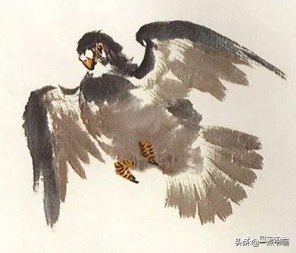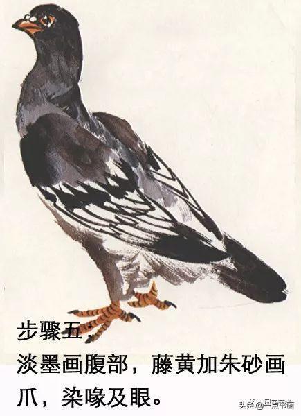步骤五:淡墨画腹部,藤黄加朱砂画爪,染喙及眼。