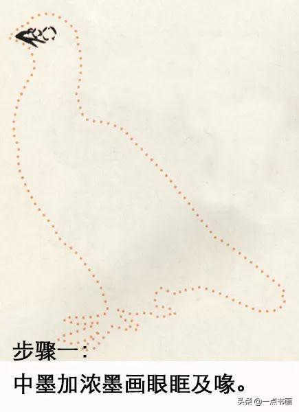 步骤一:中墨加浓墨画眼眶及喙。