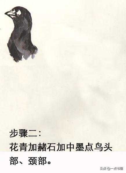 步骤二:花青加赭石加中墨点鸟头部、颈部。