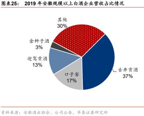 目前,安徽省的白酒市场竞争格局是“一超多强”,“一超”指的就是古井贡酒。据安徽酒业协会的数据显示,2025年古井贡酒在安徽省的营收占比为37%,口子窖为17%,迎驾贡酒13%,金种子酒为3%,其他酒企占比仅有30%。
