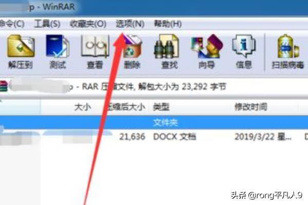 5、然后可以看到进入到压缩程序中,打开了ZIP文件,但是有时还不能完全查看打开,我们点击一下上面的“选项”选项;