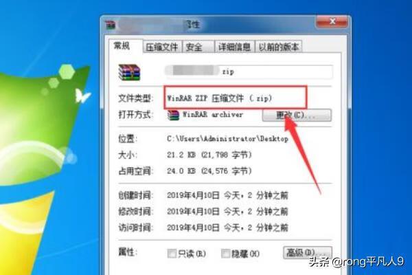 2、打开属性窗口,在里面可以看到这个文件的格式,确定是ZIP格式再进行下面的操作;