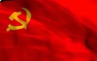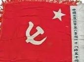 在中国共产党成立初期,全国各地党组织仿照俄共(布)旗帜,以镰刀斧头作为标识,设计制作了式样不同的党旗。表明中国共产党是以工人和农民为主力军的无产阶级先锋队组织。右下方还有C.C.P字样。