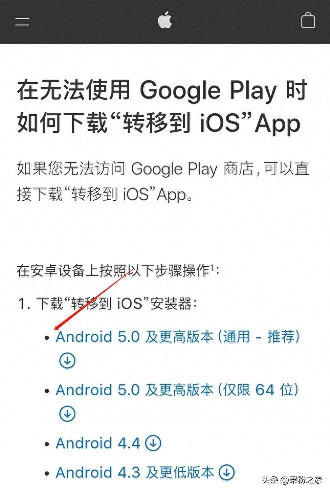 “在无法使用Google Play时如何下载‘转移到iOS’APP”下方链接