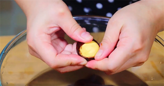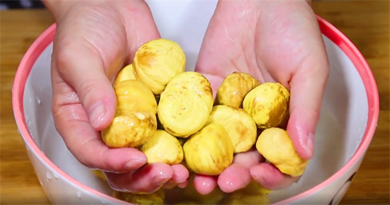 这里再给大家分享一个保持板栗外貌新鲜的好办法,剥好的板栗马上放在清水里泡着,这样可以防止板栗氧化变黑。虽然不影响口感,但是会影响卖相。用这样剥出来的板栗一颗一颗十分的分明,不管是用来炖汤,还是用来包粽子,都很方便。