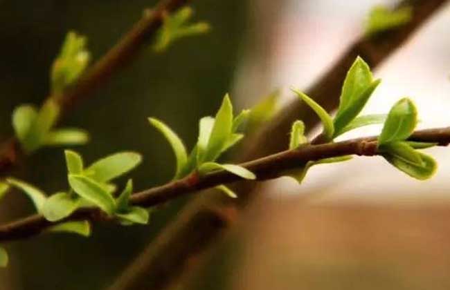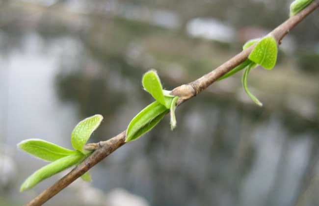 柳树一般在春季发芽,开花同步或先花后叶,无顶芽,侧芽通常紧贴枝上,芽鳞单一,叶互生,稀对生,通常狭而长,多为披针形,羽状脉,有锯齿或全缘,唐朝贺知章的“碧玉妆成一树高,万条垂下绿丝绦。不知细叶谁裁出,二月春风似剪刀”说的就是柳树发芽,