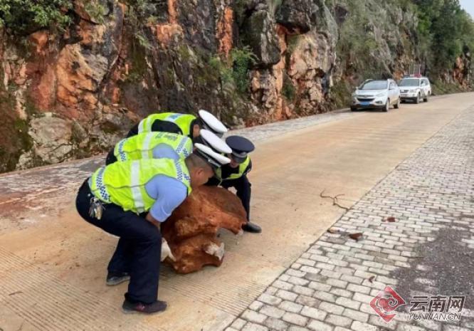 处理路面落石供图