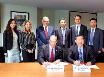 萨鲁斯大学是北美历史最悠久的视力验光测定学院之一,是美国眼科与视光人才培养及科学研究的领先者。座谈会上,美国萨鲁斯大学的校长和教务长和访问团分享了在眼视光教学方面的先进理念与宝贵经验,在眼科与视光学专业双学位教育、高水平人才培养体系建设等方面进行了深入交流。在前期沟通基础上,毕宏生院长受山东中医药大学委托与萨鲁斯大学校长签订了《研究生联合培养合作协议》。交流结束后,访问团参观了萨鲁斯大学埃尔金斯校区、宾夕法尼亚视光学院和眼科临床中心等地。