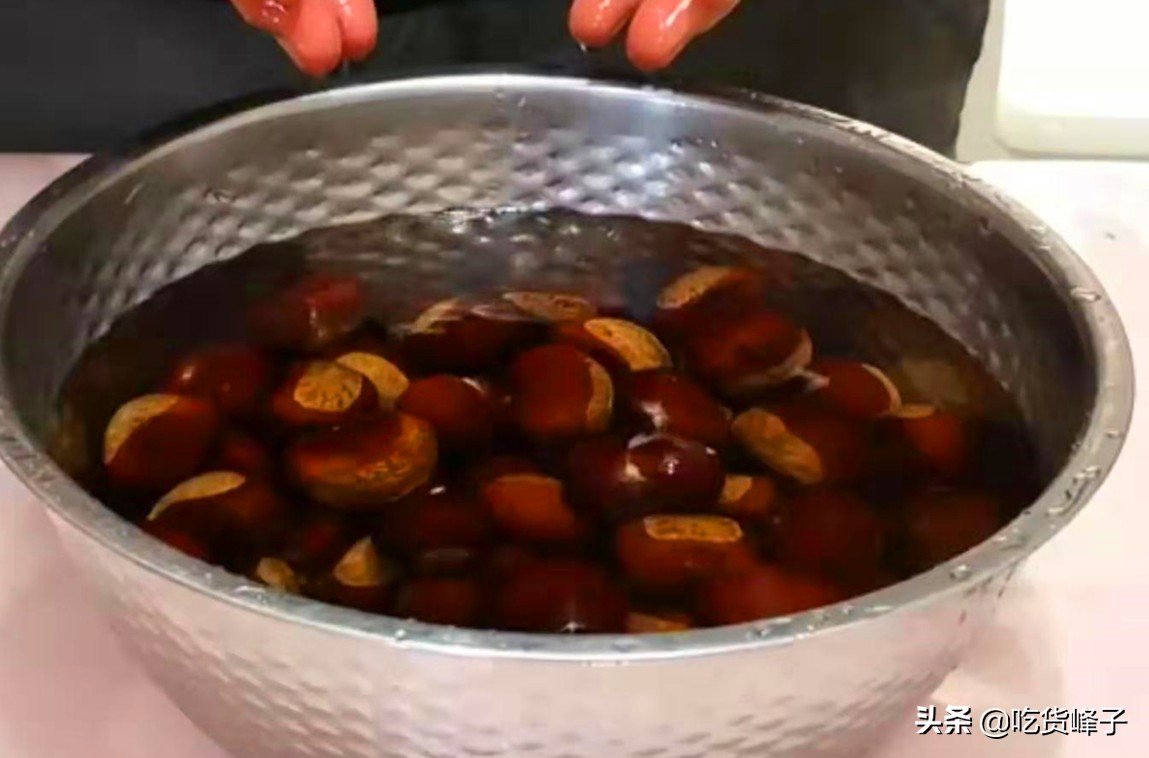 知道了如何保存板栗,我们再分享一个如何快速剥板栗的小窍门:从冰箱内取出板栗无需解冻,直接放开水里泡10分钟,然后趁热用剪刀剪出一个口子,就可以轻松去壳了,里面的内膜一点也不会沾肉,非常的干净。