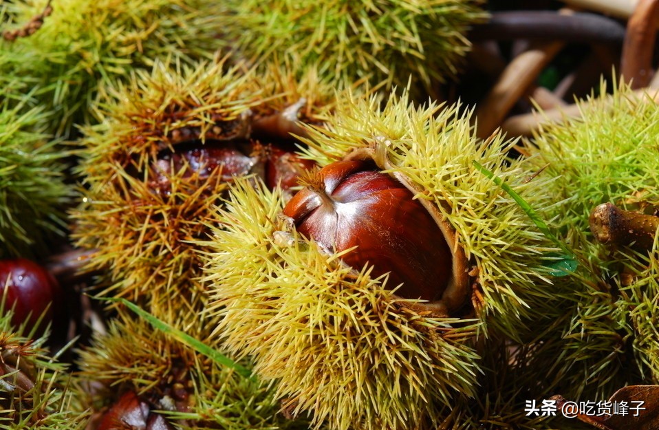每年的九月份,板栗飘香,大街小巷到处都是糖炒栗子,香味十足,叫卖声此起彼伏,好不热闹!说到板栗,又叫栗蓬、毛栗、风栗等,是壳斗科植物的果实,成熟前有一层尖尖的外壳,犹如小刺猬,素有“千果之王”的美誉,与桃、杏、李、枣并称为“五果”,果肉具有益胃、补肾、平肝、强筋、止血等功效,因此又被称作“人参果”、“肾之果”。