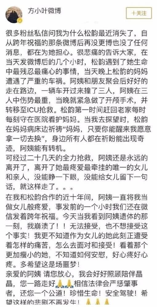 而且此前谭松韵的经纪人曾发文透露,在跨年夜谭松韵母亲遭遇了车祸,经过20多天的抢救却还是离开了。之后谭松韵在某综艺节目中谈到母亲时忍不住流泪,还表示希望妈妈能够变成自己的女儿,这样一来可以报答母亲的恩情。