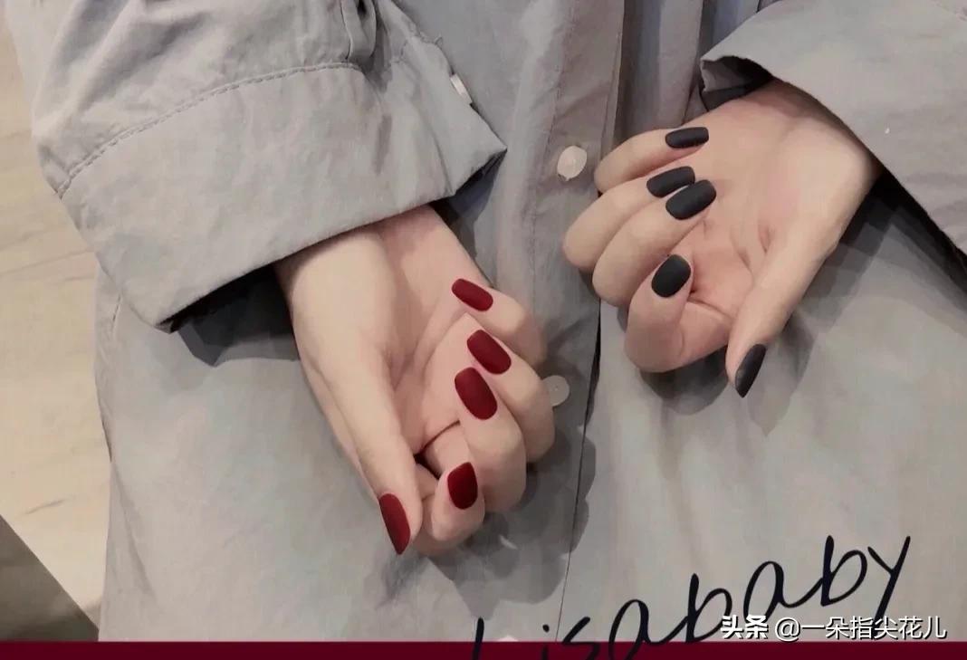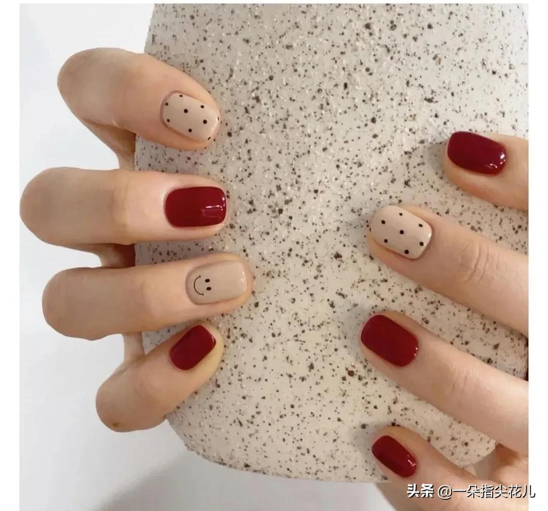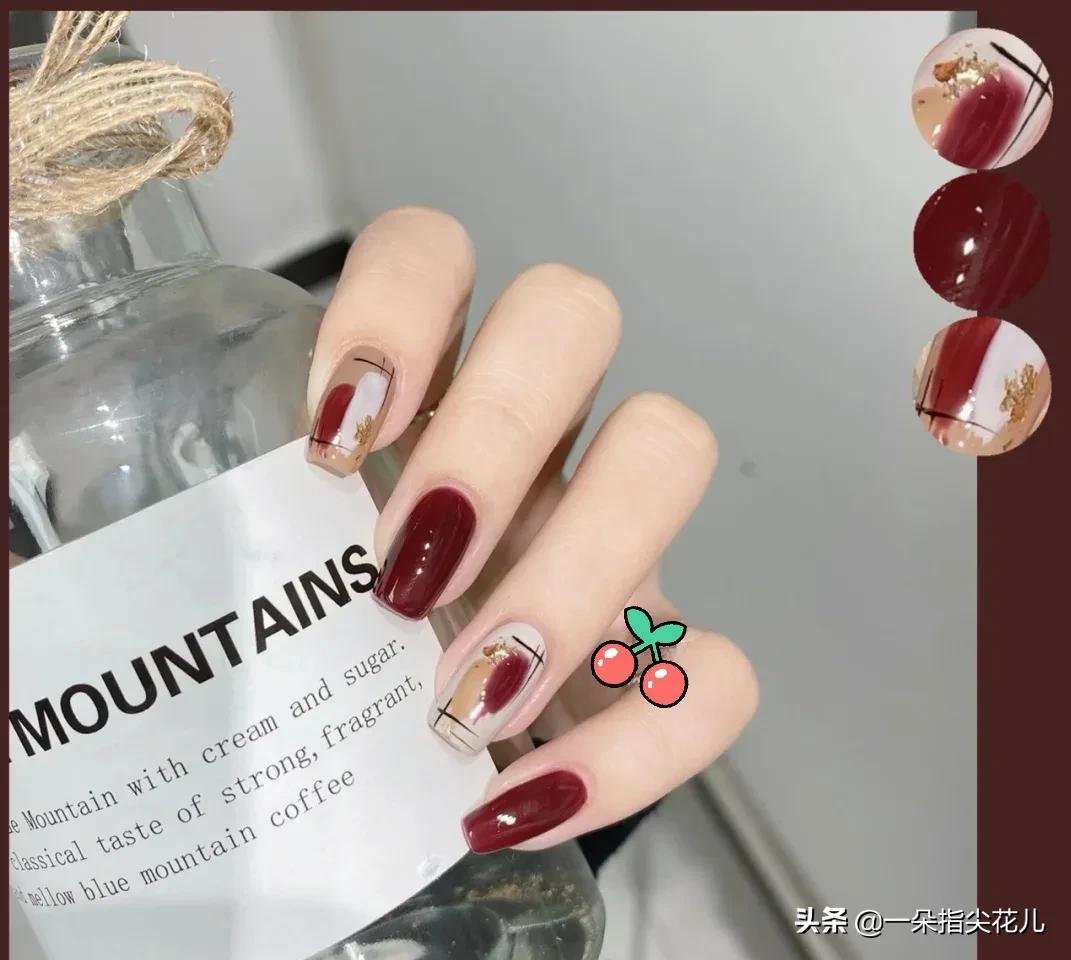 第六款:深枣红+彩绘色块。颜色显白,时尚又简约。