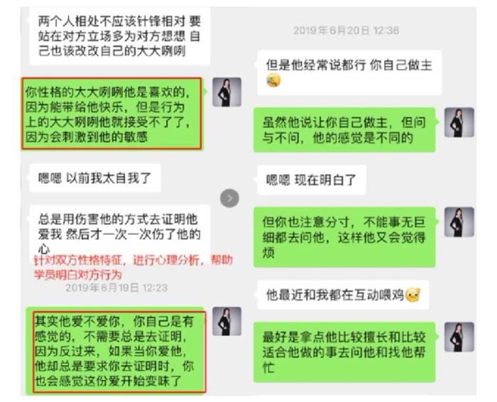 针对这种情况,导师从彼此性格的形成,已经原生家庭角度出发,分析了目标对象的心理特征,对方的小心眼也好,不信任也好,并不是不够爱,而是因为成长环境造成的,在这段感情中,受伤的不仅仅是小欣自己,目标对象才是最痛苦的那一个,一个人心理的创伤是很难愈合,却又是很容易再次受到伤害的。