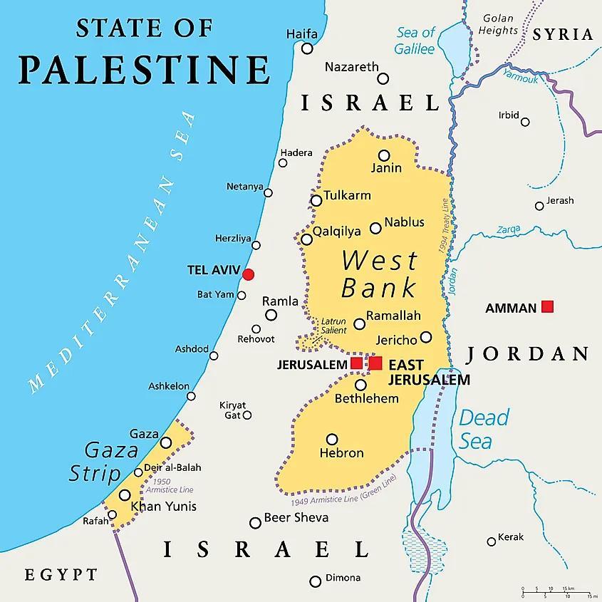 顾名思义,西岸是位于约旦河西岸的一片领土。许多国家承认它是所谓的巴勒斯坦一部分,但在以巴冲突得到解决之前,巴勒斯坦的边界尚未确定。对以色列人和巴勒斯坦人来说,西岸是圣经圣地的核心。它包含了几个重要的宗教场所,对犹太人、基督徒和穆斯林来说是神圣的。西岸也是大多数巴勒斯坦人和巴勒斯坦权力机构(巴勒斯坦权力机构)总部所在地。