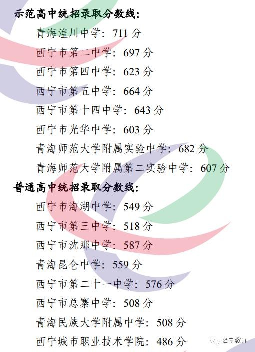 1.西宁城区2022年各高中学校录取分数线;