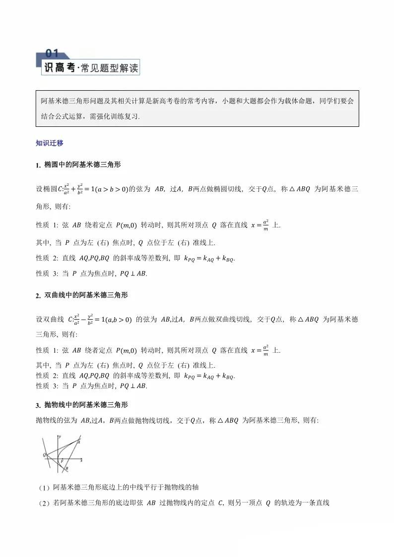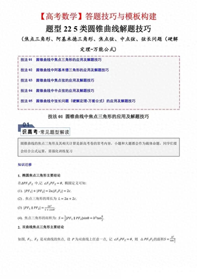 圆锥曲线不仅是高中数学的重点,更是难点,也是高考中拉分高的专题,其计算量繁琐复杂,好心的老师整理了五类圆锥曲线的解题技巧+题型训练,助力同学们能熟练掌握并能信手拈来