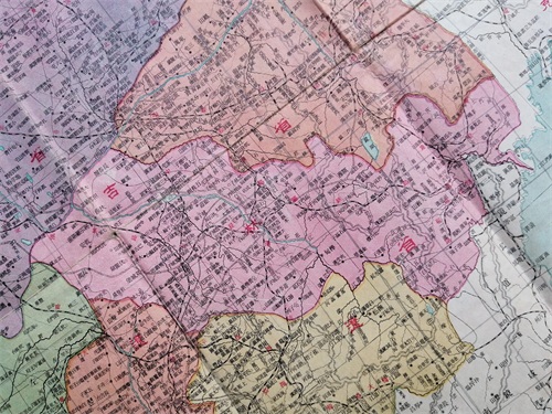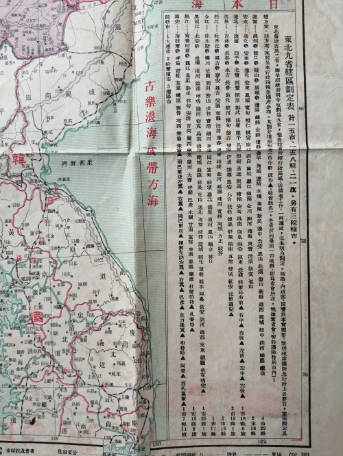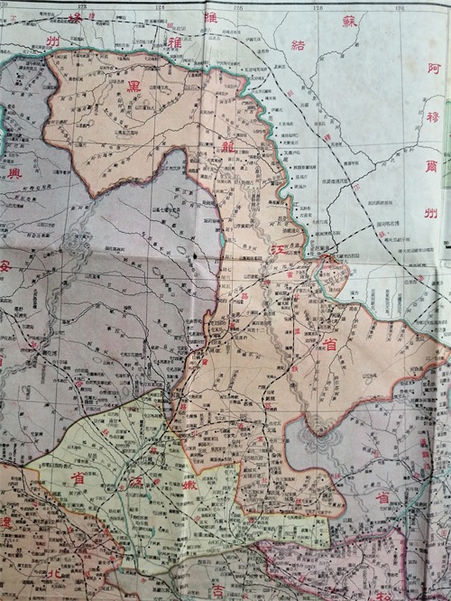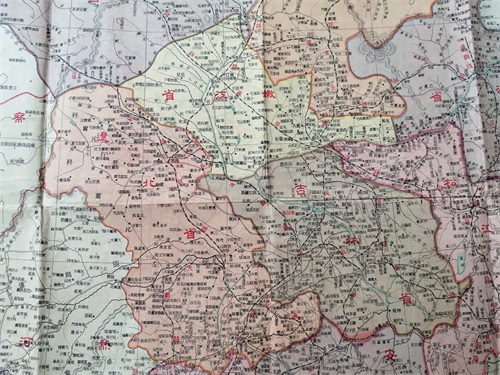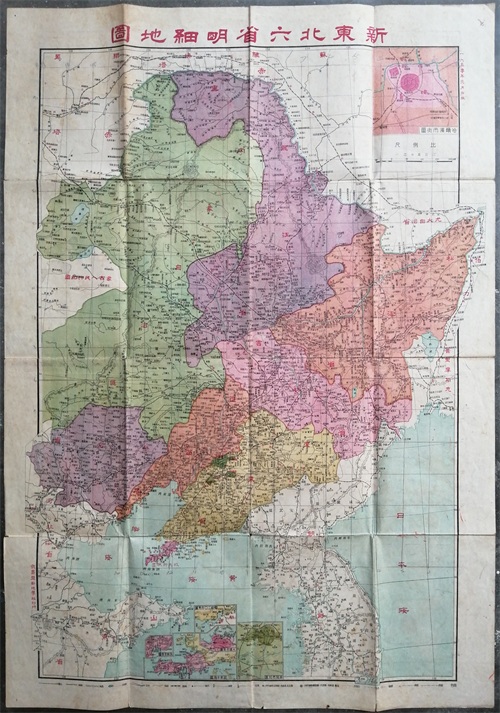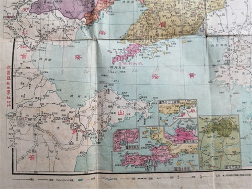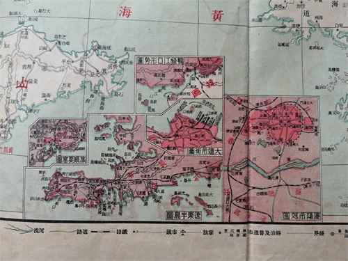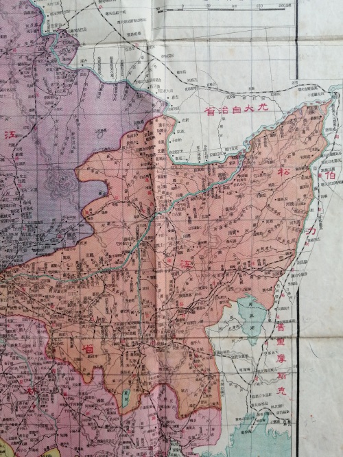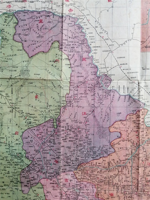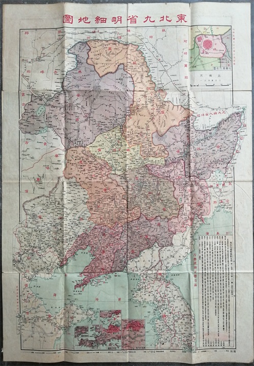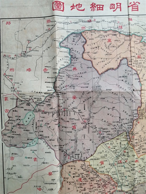 那时的东北形势发展非常快,老的东北九省地图已赶不上发展形势,估计当时没有售完。新中国成立后,在出新图时要先印样图,亚新将库存的《东北九省明细地图》背面充分利用,印了《新东北六省明细地图》,就出现了这么一张特别的地图,非常珍贵。
