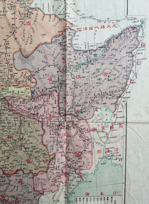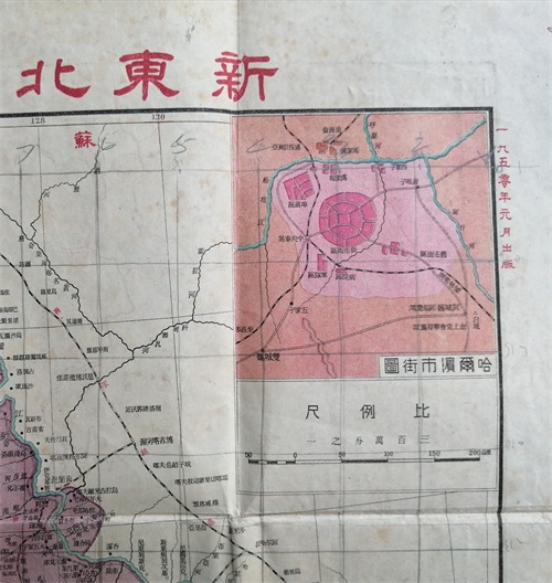 这是一张非常特别的东北老地图,双面印刷,两个出版时间,跨越两个时代。
