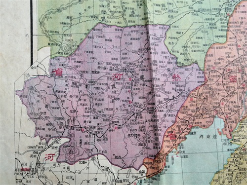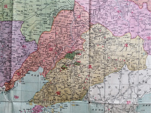 另一面是新中国1950年1月的《新东北六省明细地图》。1949年新中国成立后,东北改设为六个省,分别为辽东省、辽西省、吉林省、黑龙江省、松江省、热河省,另还设有沈阳、抚顺、鞍山、本溪四直辖市和旅大行政区。