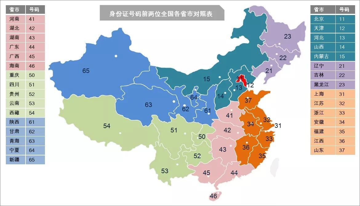 9.知道身份证号码前两位代表的含义吗?