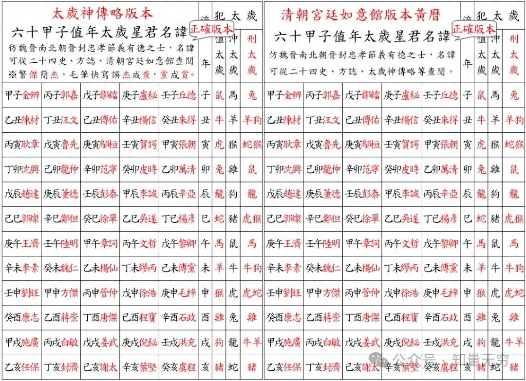 先说说什么是太岁。太岁也称为岁星,岁君,顺星。这个概念现在多指每一年的那个“年”,比如2024甲辰龙年,我们称之为甲辰太岁,马上就到2025乙巳年,那么即为乙巳太岁。因为干支相配一共有60种组合,称之为60花甲子。相应的也就一共有60个太岁。