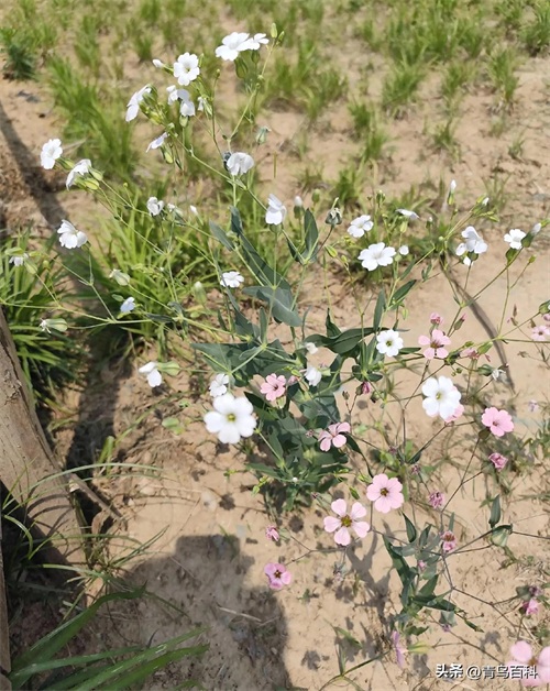 麦蓝菜是石竹科一年或两年生草本植物,全株无毛,茎直立还膨大,上部有分支,叶对生,开着粉红色或白色的小花,还挺好看。