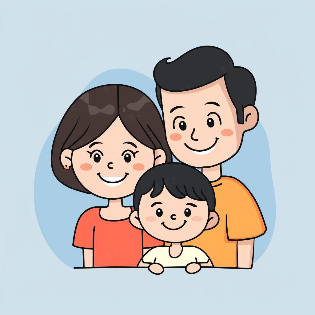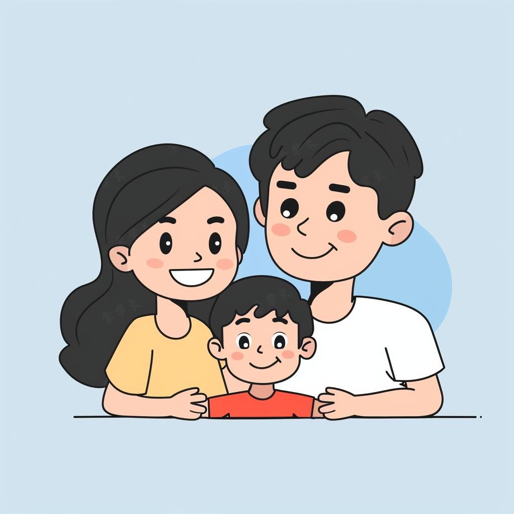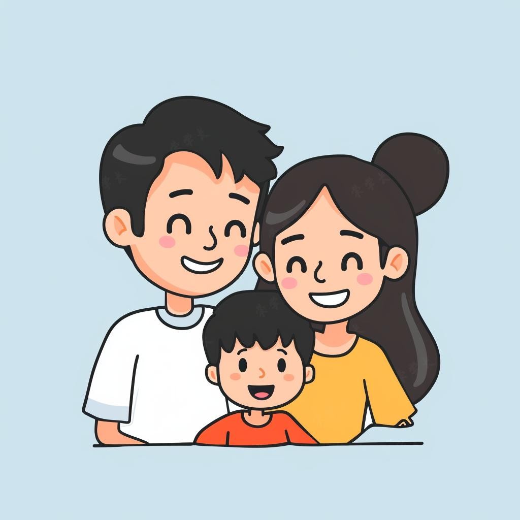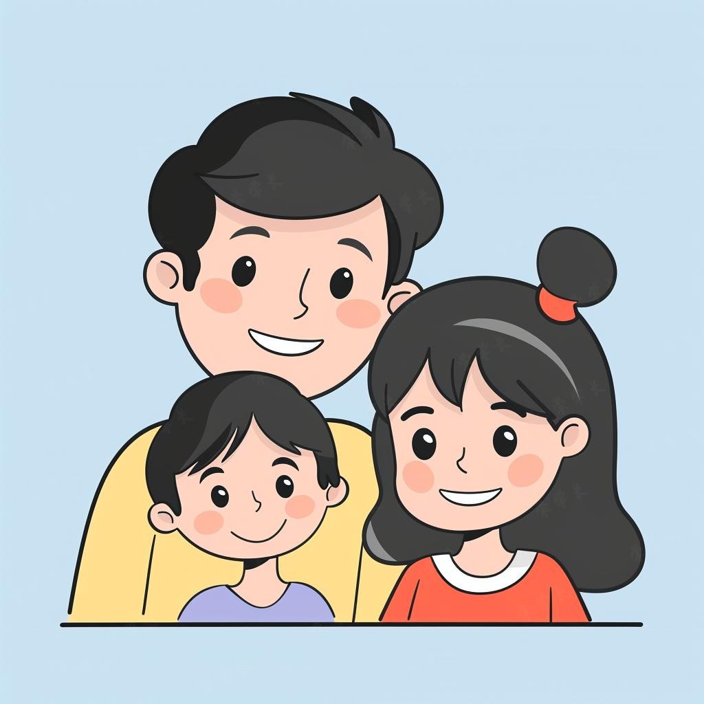 亲子头像 | 一家三口超萌简笔画亲子头像