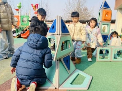 淄博市淄川区柳泉幼儿园开展户外搭建游戏