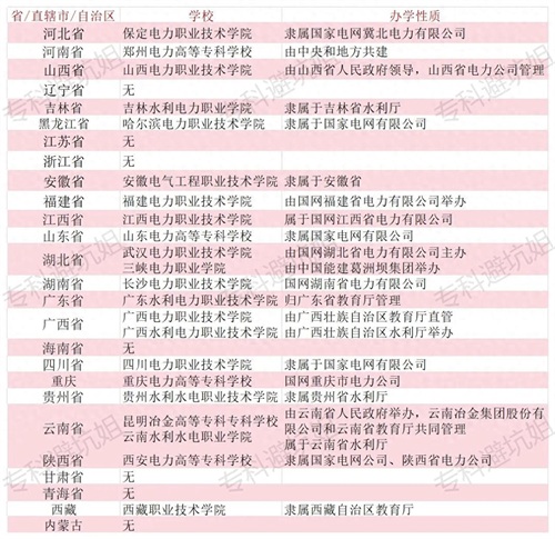 全国各省电力特色专科院校已经给你们汇总好了