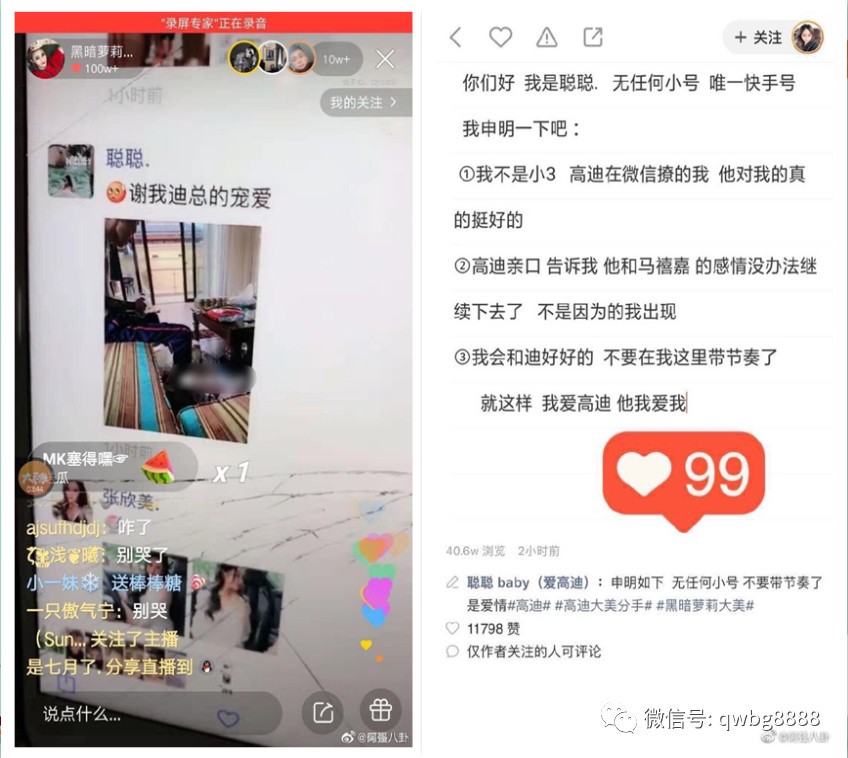 高迪出轨原因曝光?私信女主播?第三者浮出水面讲述整个事件